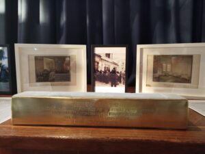 “Stolpersteine” is a German word that translates to “stumbling stones.” It is a project created by Berlin artist Gunter Demnig. These are cubic concrete stones measuring ten by ten centimeters with one side covered by a brass plate. The plate contains an inscription about the survivor, victim, or location.